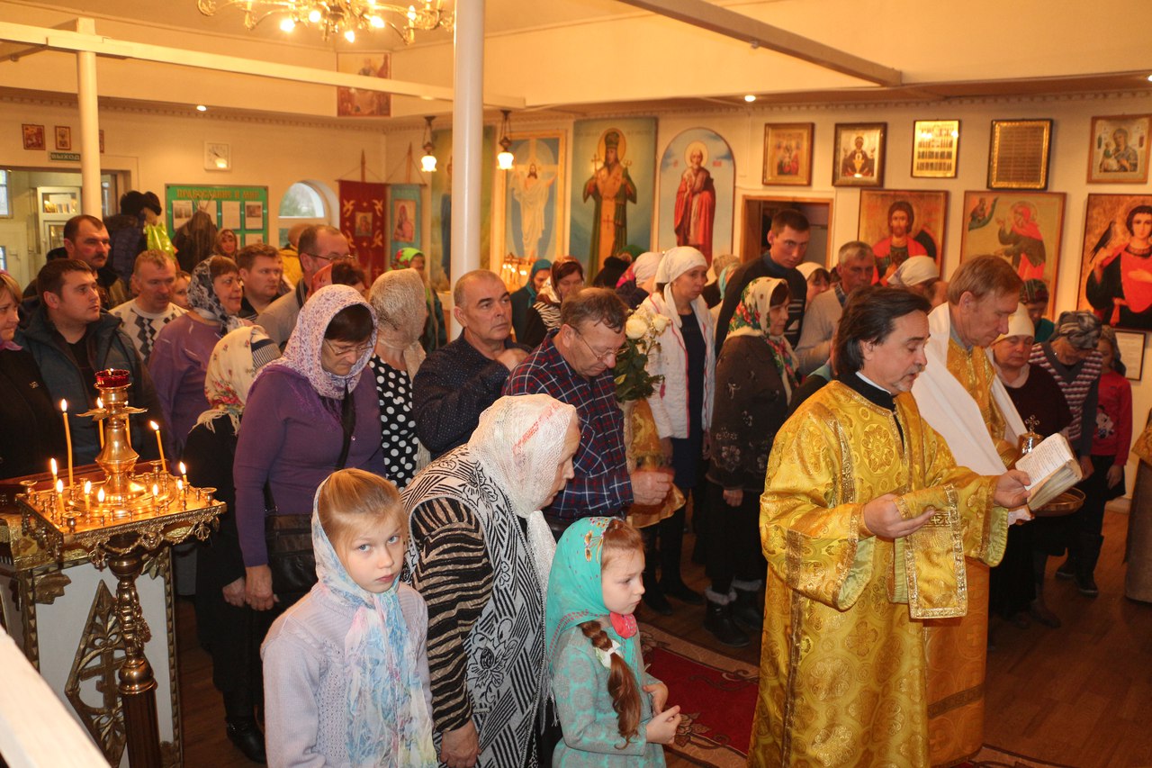 По заамвонной молитве в середине храма перед праздничной иконой духовенство и верующие пропели славление чествуемой в этот день великомученице Варваре.